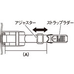 ストラップラダー部のあごひもを緩め、アジャスターをスライドさせて(A)の長さを調節します。