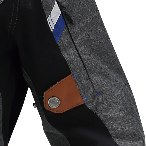 独自のスポーツライディングに適したカッティングとエッジフルなデザインを採用し、高機能の透湿防水素材をベース生地に採用しながら、伸縮素材や消臭素材、リフレクトパーツ、吸汗速乾素材(裏地)などを適材適所に巧みに使い分け、組み合わせています。