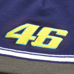 ヤマハレーシングブルーとロッシカラーの上品なニットキャップ。