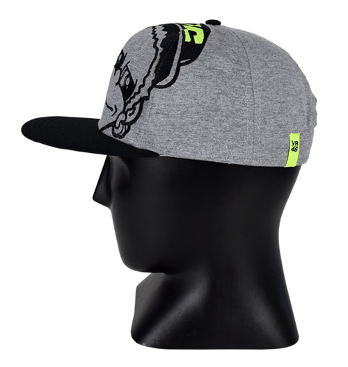 - ロッシの似顔絵が大きく刺繍されたキャップ