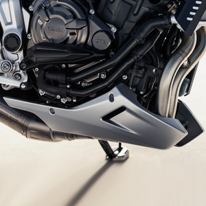 車体下部の整流効果を高め、スタイリングにより精悍なイメージを与える左右分割タイプのアンダーカウル。