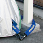 - オリジナルスリットにより大型ロックに対応。前輪でも後輪でも車体カバーの上からロックできます。