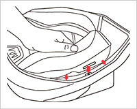 チークパッドを図のように引いて取外してください。