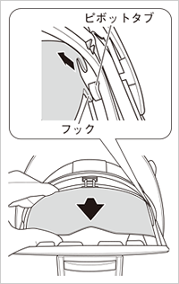 レバーを3位置にスライドさせます。≫ レバーのスライド方法はこちらサンバイザーの両側にあるフックを、ピボットタブに引っ掛けます。