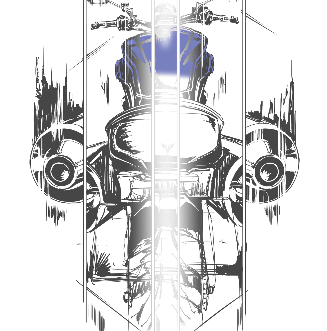 ヤマハモーターサイクルの特徴的なデザインを車両デザイナーが描きおろし。