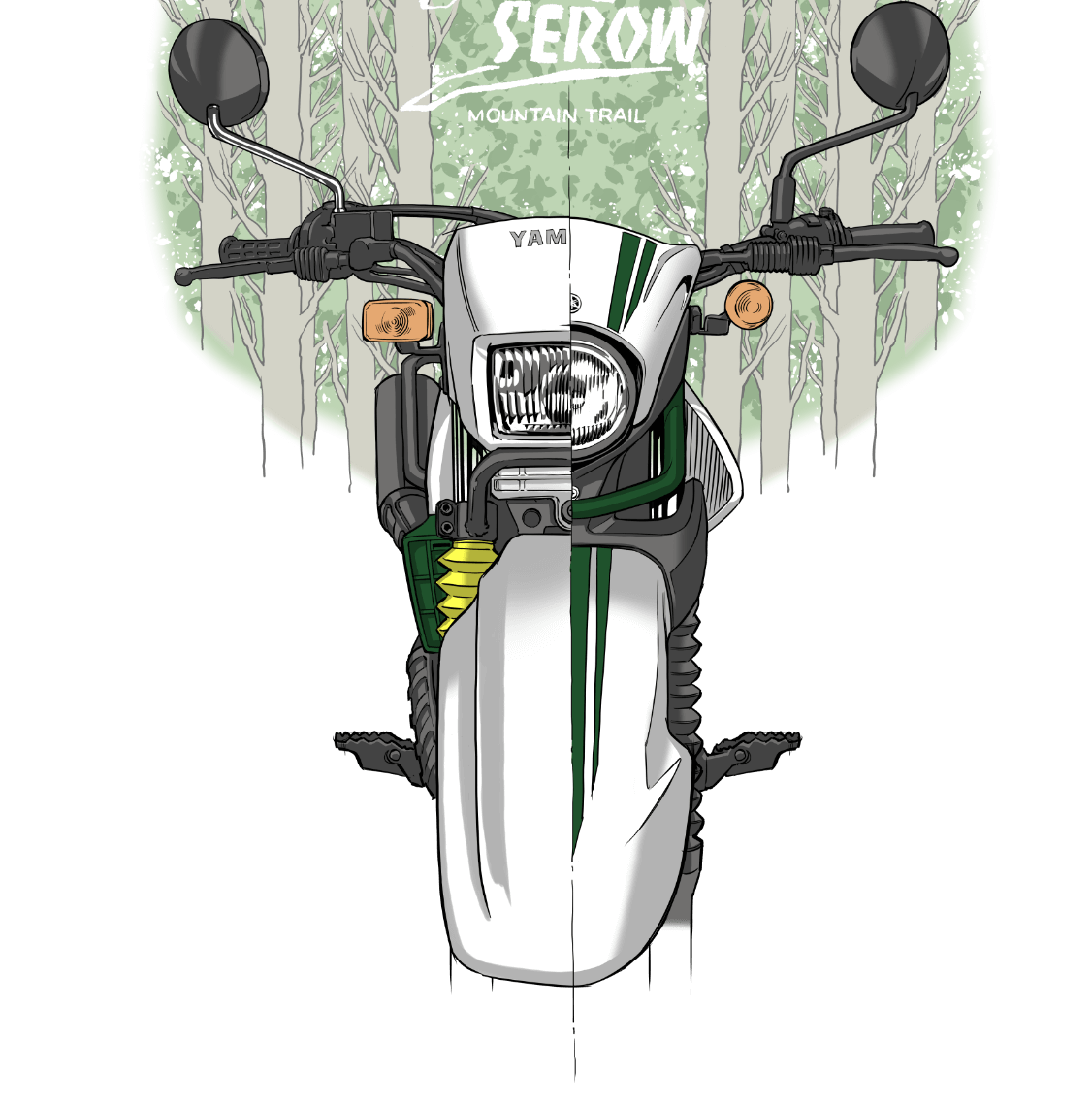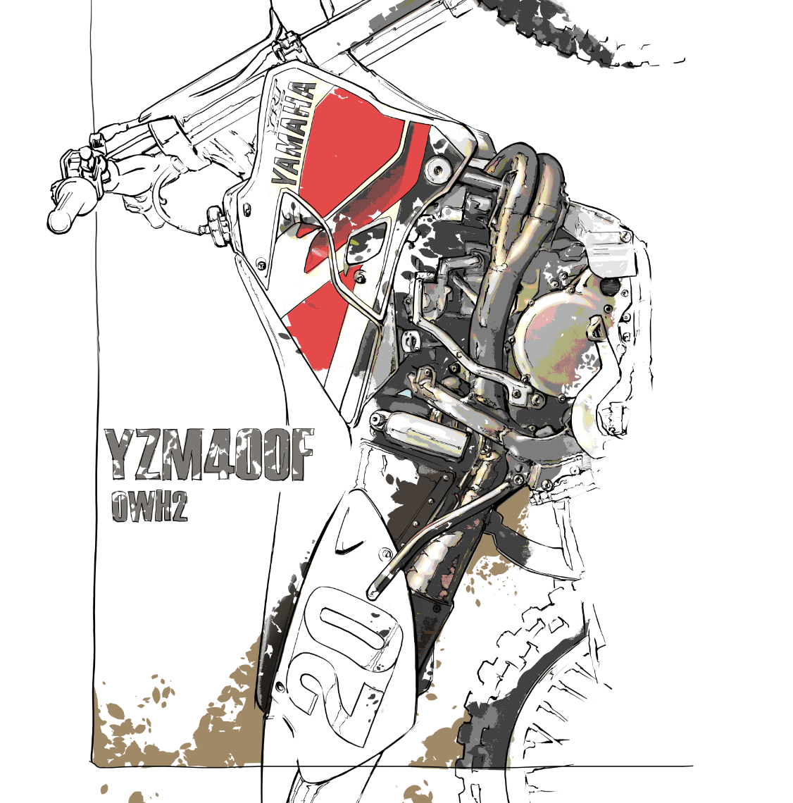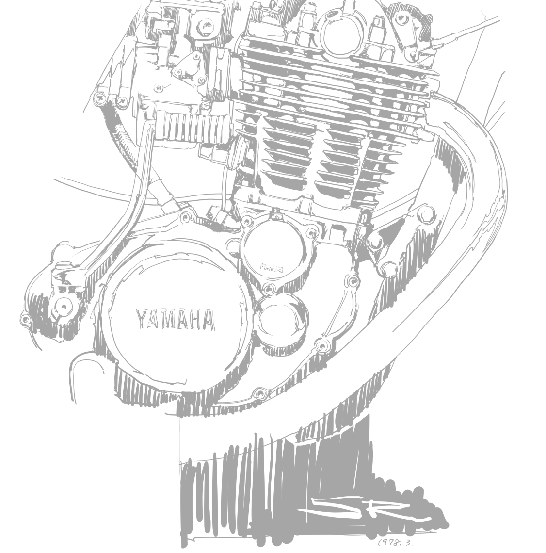 繊細なタッチで描かれたイラストは、ヤマハモーターサイクルの美しいデザインを感じさせます。