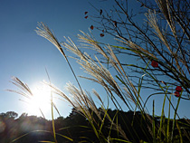 - 思いのほか早く傾く日差しと開きかけのススキの穂が家路へと誘います