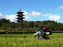 - 五重塔と青空と稲穂のコントラストが印象的でした。