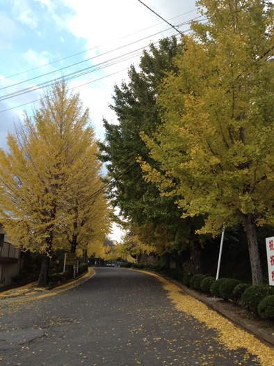 - 母校の校門から校舎へ続く銀杏並木です。