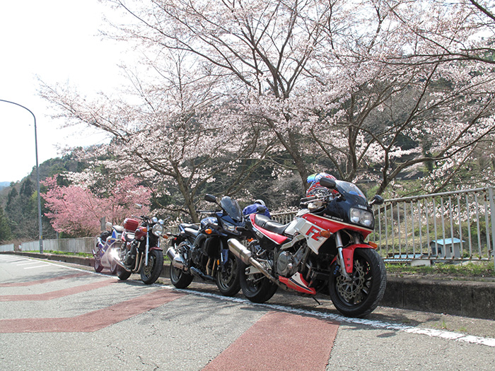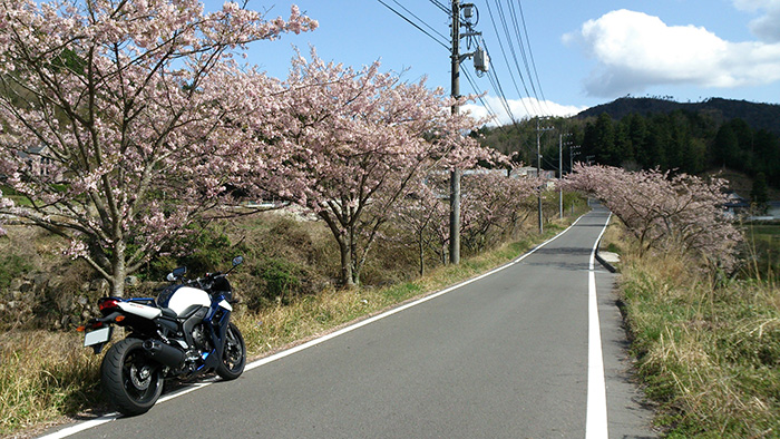- ヤマハ車だけでの埼玉県秩父ツーリングにて桜並木の下でパチリ!