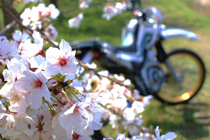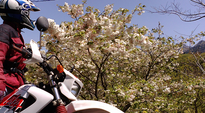 - バイク仲間と林道の桜