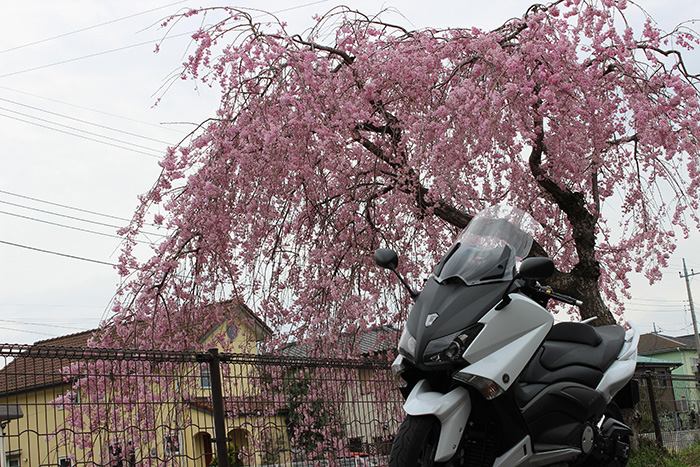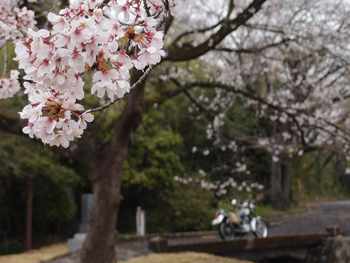 - うちのSRは、”ミーヨ”と言います。霧雨の中サクラのバックで佇んでます。