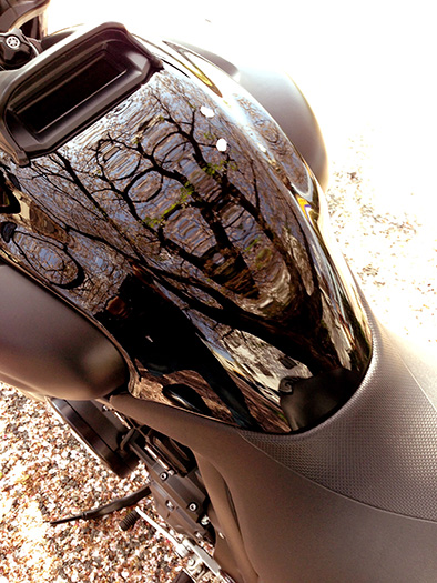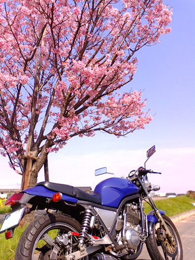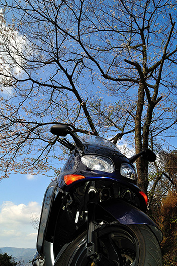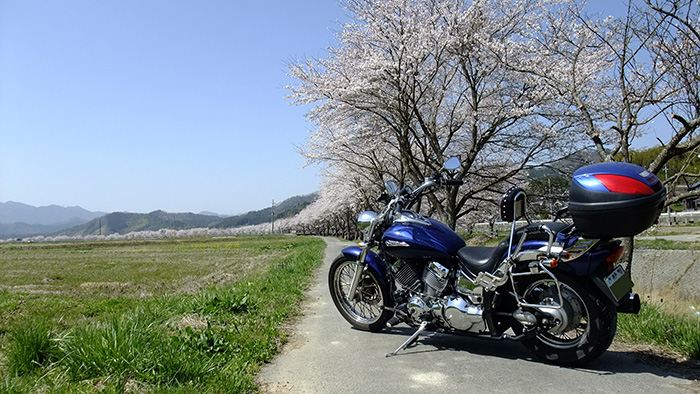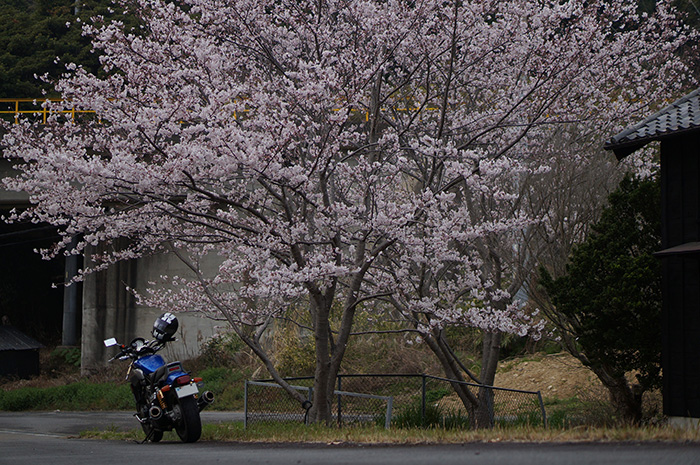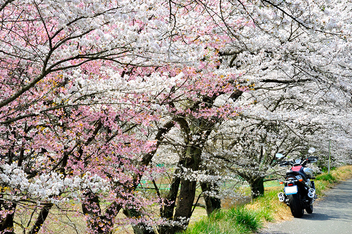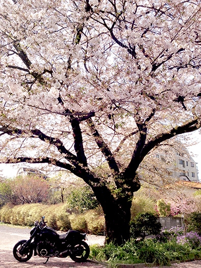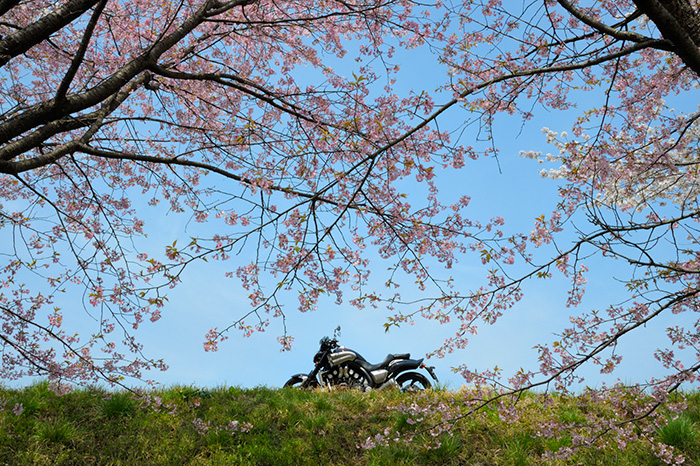 - 走り慣れた道で偶然見つけた桜。バイクに乗ると普段は気付かない風景が見えてくる。