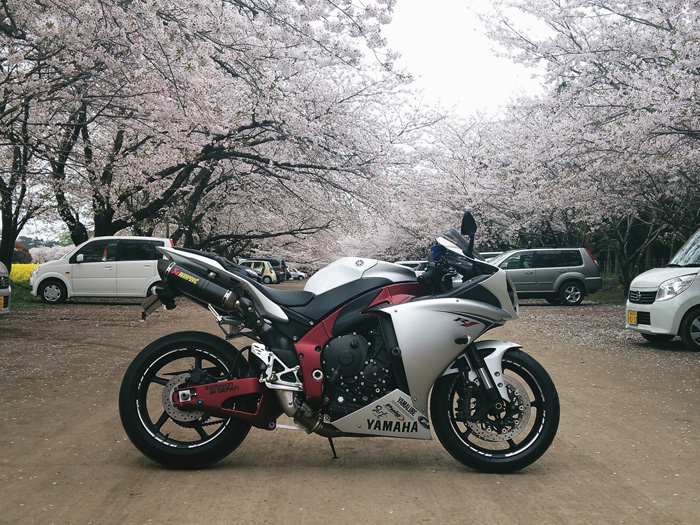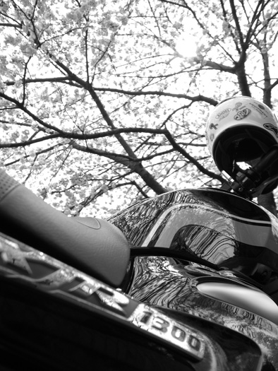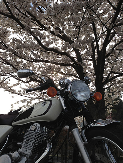 - 偶然見つけた桜と始めての愛車であるSR400の写真です