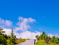 - 青い空と白い雲。そして、空へと続く道。